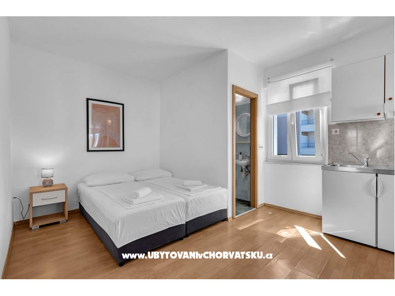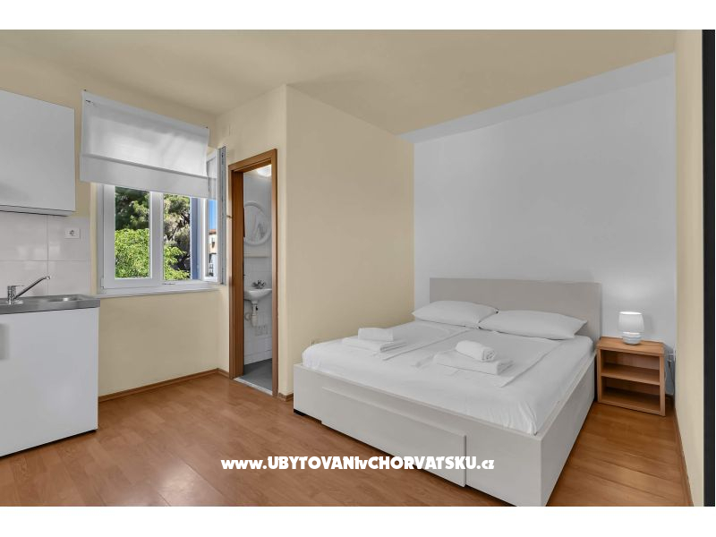 "Jakov A1" - Studio A1 se nachází v prvním patře a může ubytovat až 2 osoby. Má manželskou postel, mini kuchyň a koupelnu.