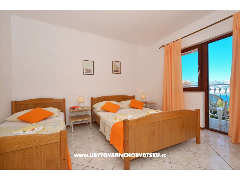 "Nevenka 1" - První patro, ventilátor v obývacím pokoji, klimatizace ve všech ložnicích, 3 ložnice (2 s manželskými postelemi, 1 se dvěma samostatnými lůžky, která lze spojit), 3 koupelny se sprchou, extra toaleta, 3 balkony/terasy.